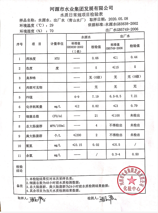 2020年5月8日水質(zhì)檢驗(yàn)報(bào)告