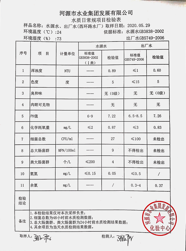 2020年5月29日水質(zhì)檢驗(yàn)報(bào)告
