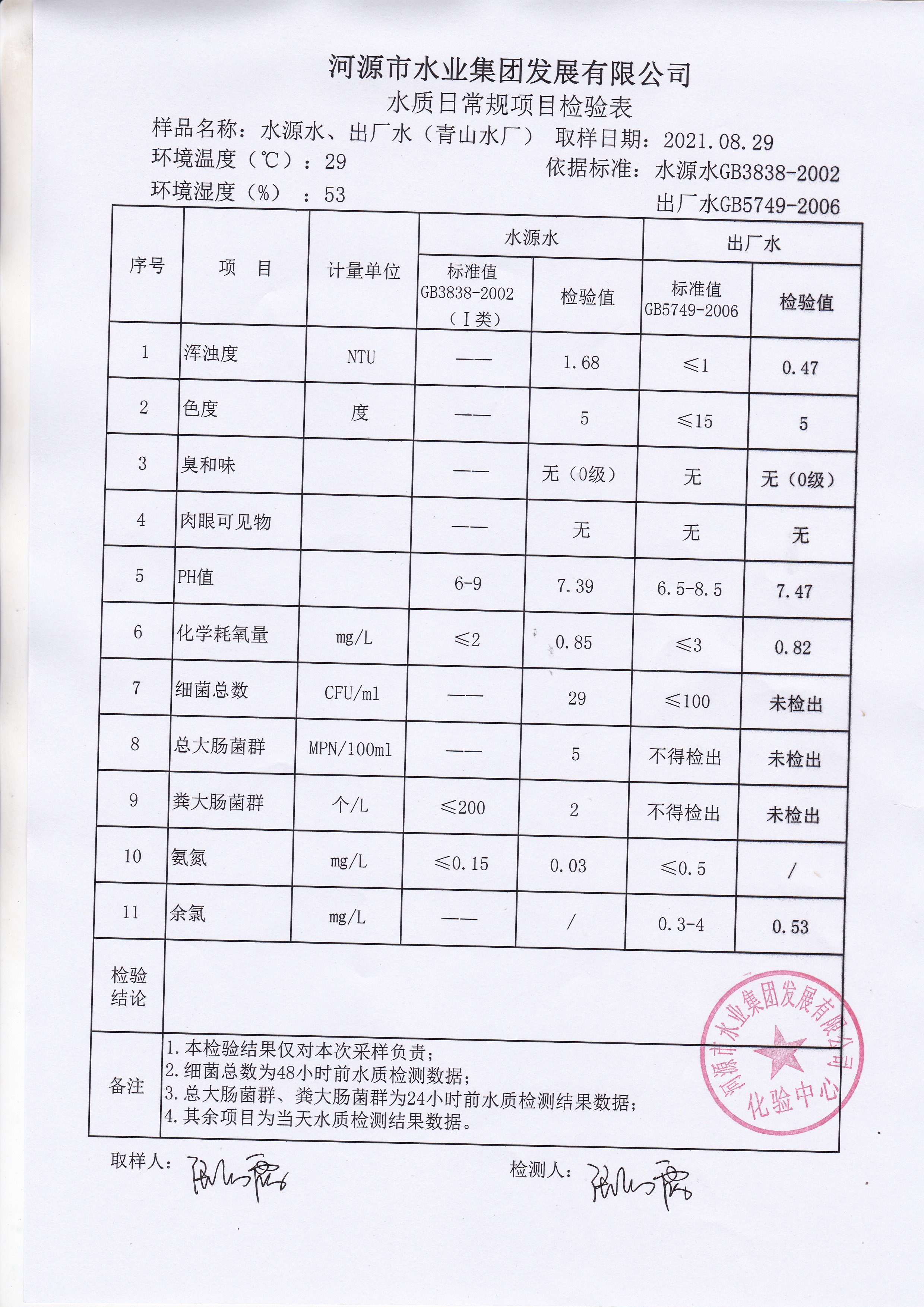 2021年8月29日水質(zhì)檢驗(yàn)報(bào)告 ????