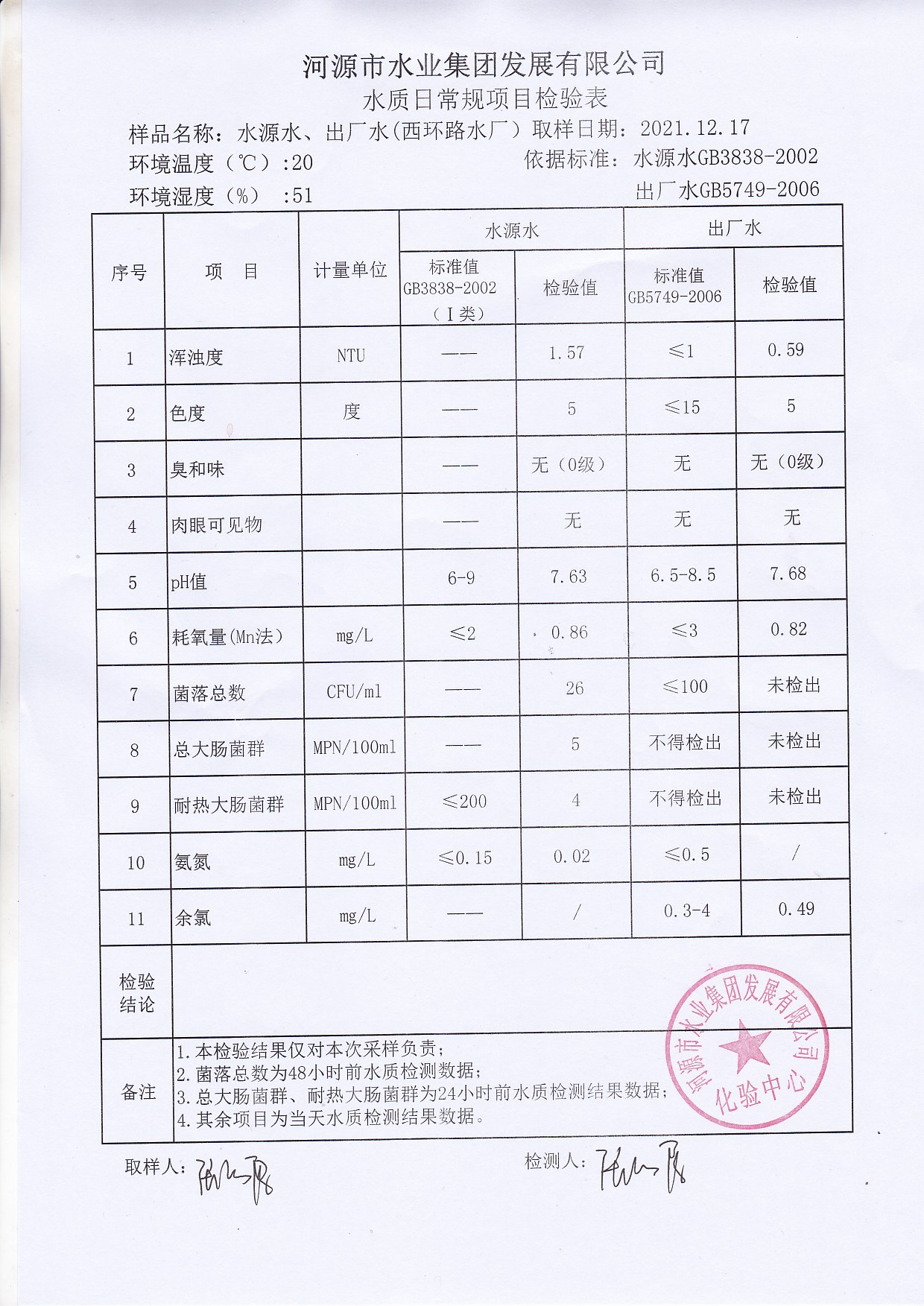 2021年12月17日水質(zhì)檢驗(yàn)報(bào)告 ????