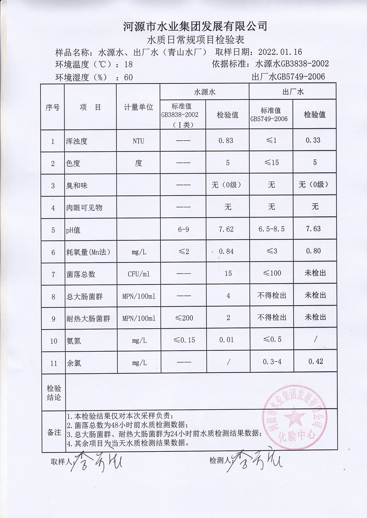 2022年1月16日水質(zhì)檢驗(yàn)報(bào)告 ????