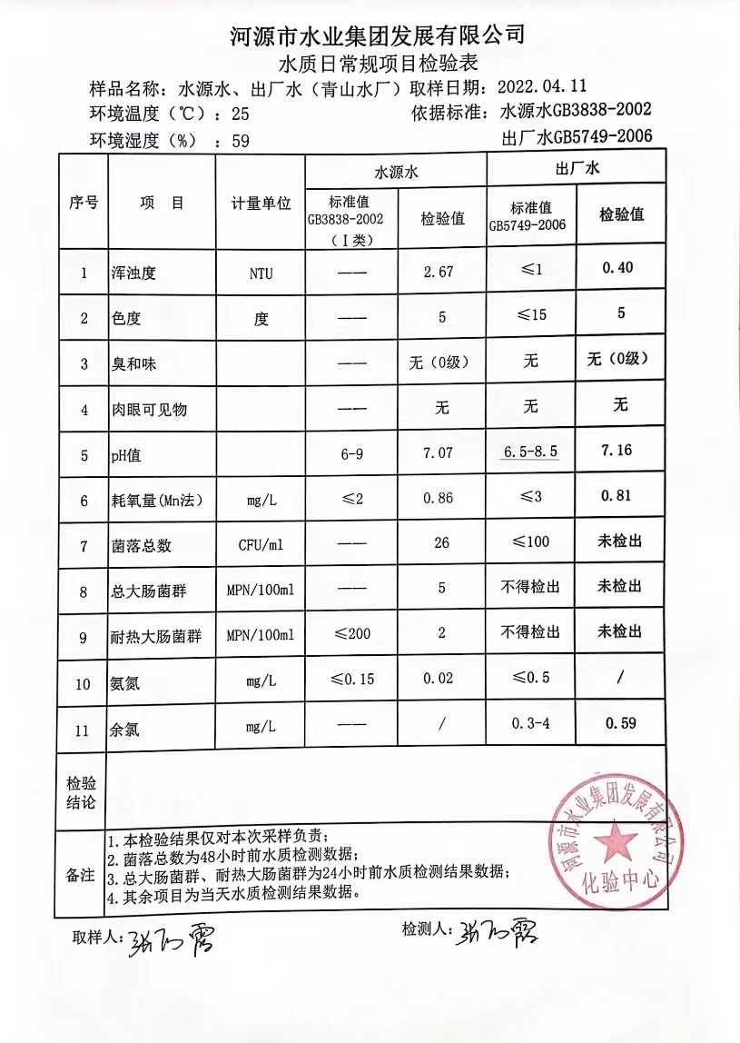 2022年4月11日水質(zhì)檢驗(yàn)報(bào)告