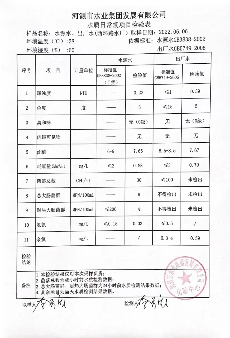 2022年6月6日水質(zhì)檢驗(yàn)報(bào)告 ????