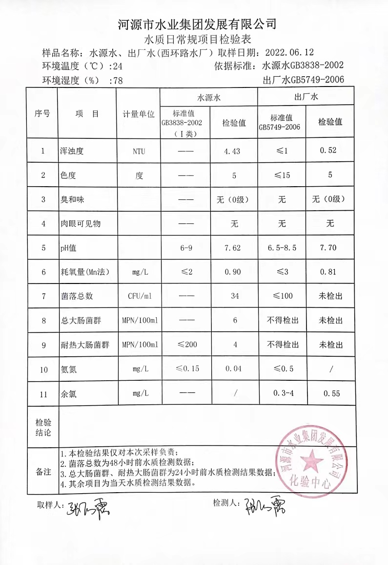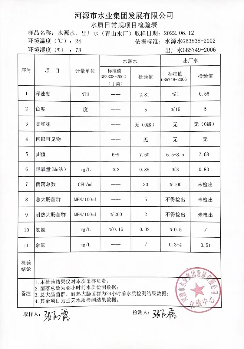 2022年6月11日水質(zhì)檢驗(yàn)報(bào)告 ????