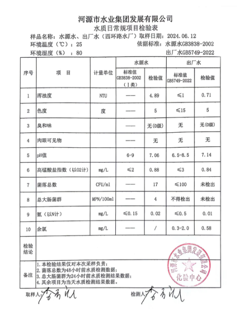 2024年6月12日水質(zhì)檢驗(yàn)報(bào)告 ???