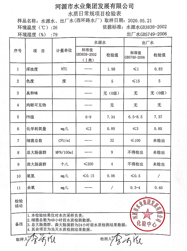 2020年5月21日水質(zhì)檢驗(yàn)報(bào)告