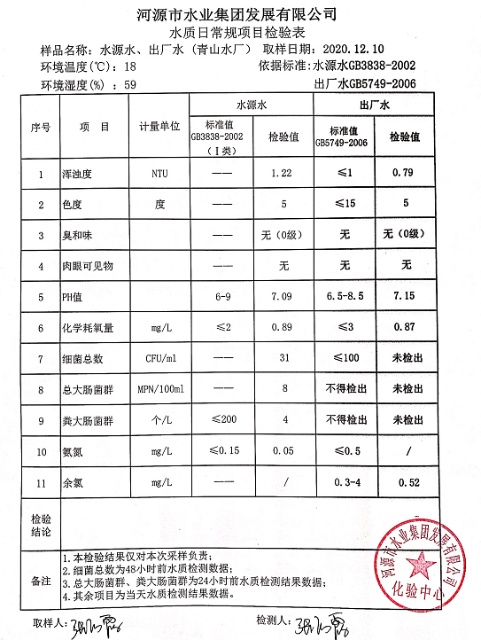 2020年12月10日水質(zhì)檢驗(yàn)報(bào)告
