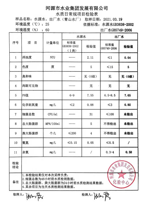 2021年3月19日水質(zhì)檢驗(yàn)報(bào)告