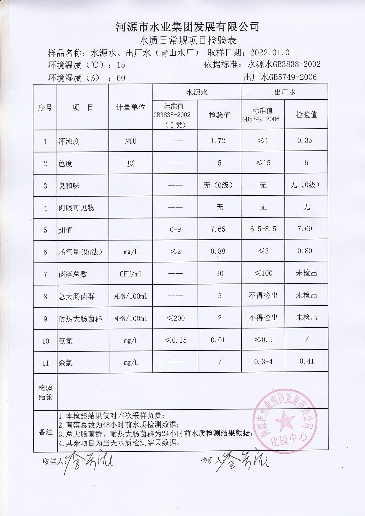 2022年1月1日水質(zhì)檢驗(yàn)報(bào)告 ????