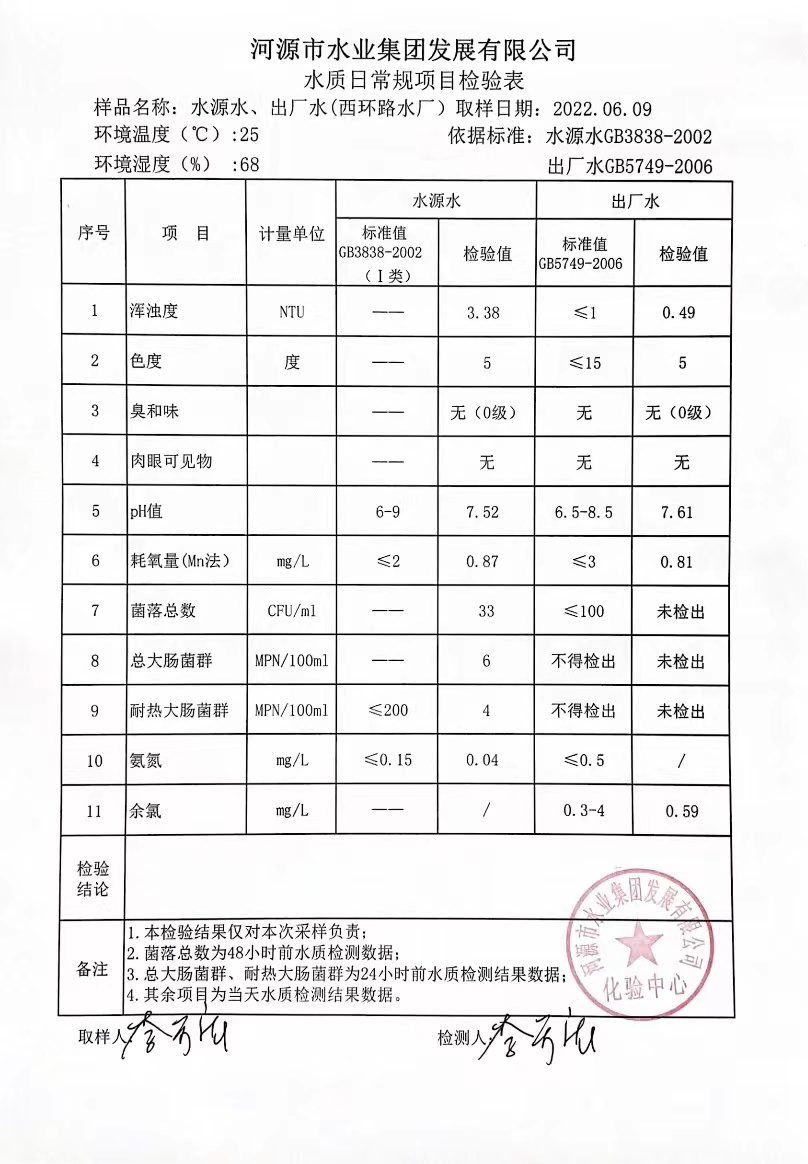 2022年6月9日水質(zhì)檢驗報告 ????