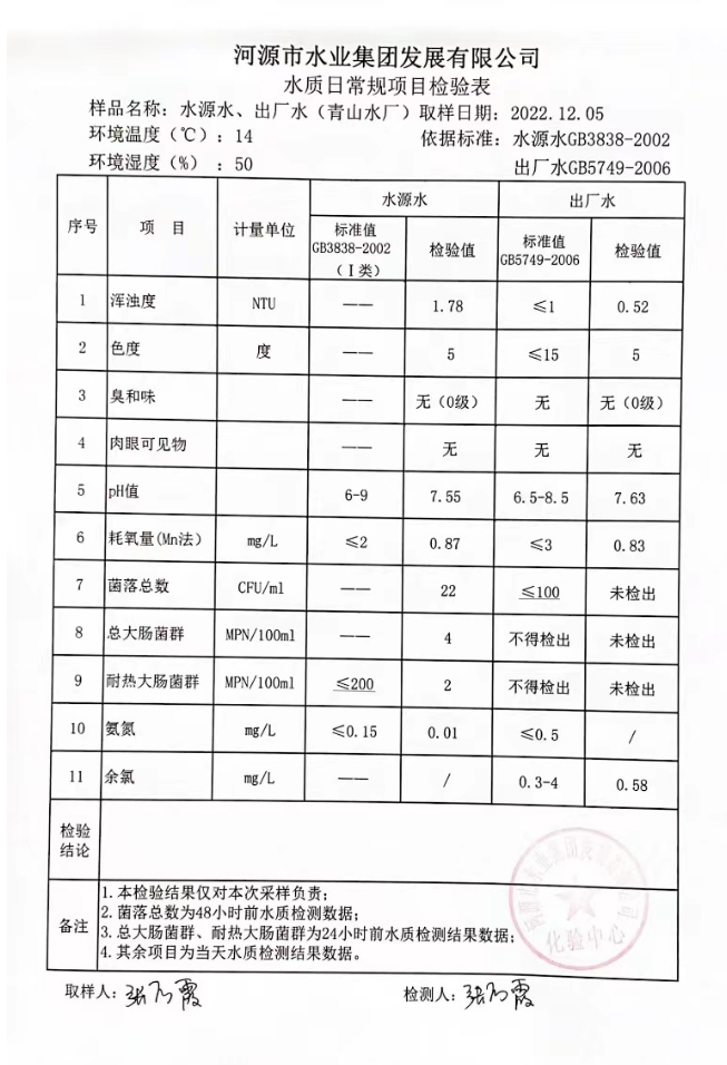 2022年12月5日水質(zhì)檢驗(yàn)報(bào)告