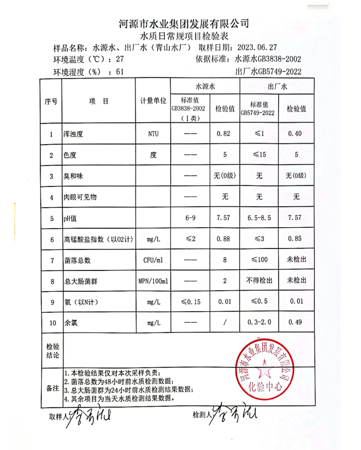 2023年6月27日水質(zhì)檢驗(yàn)報(bào)告